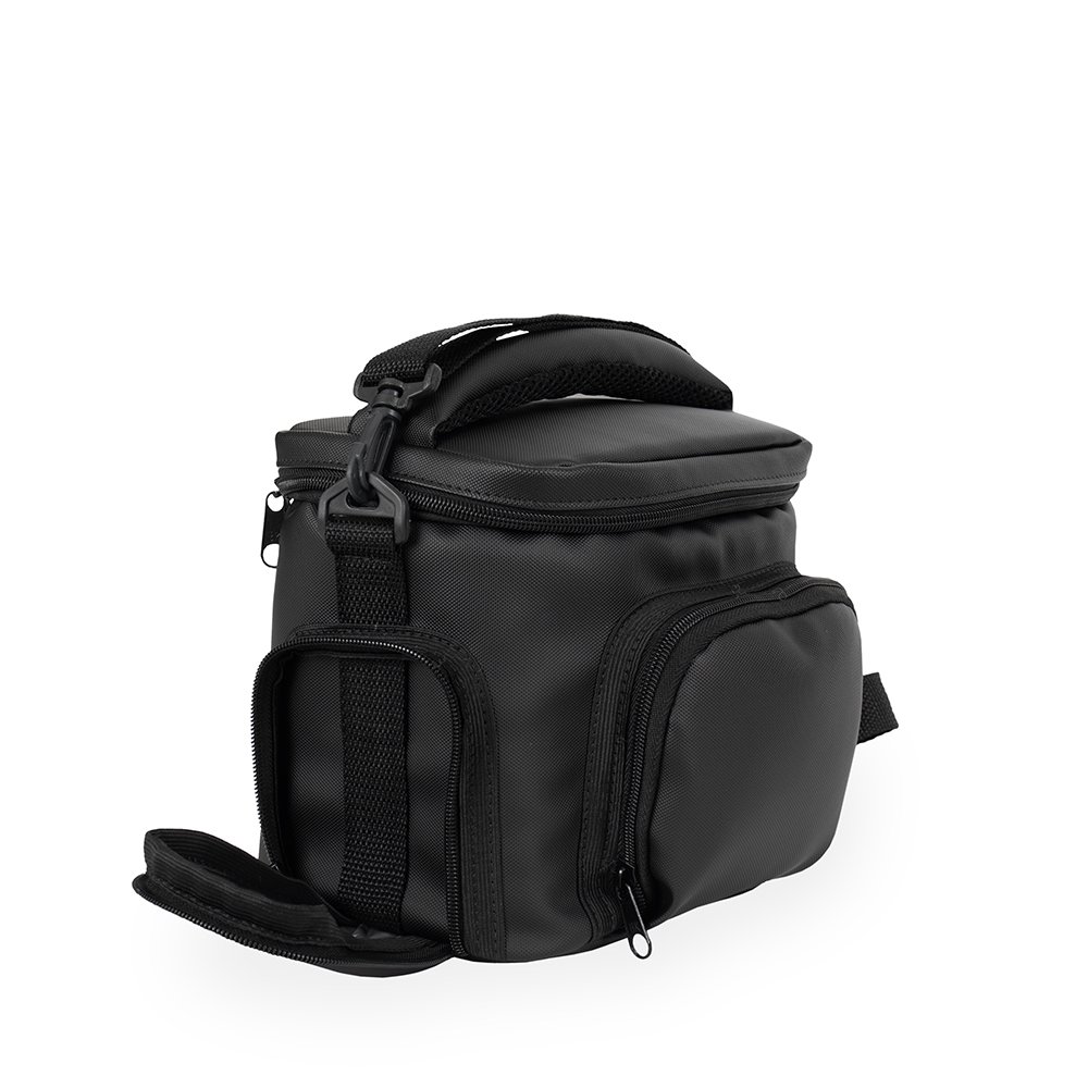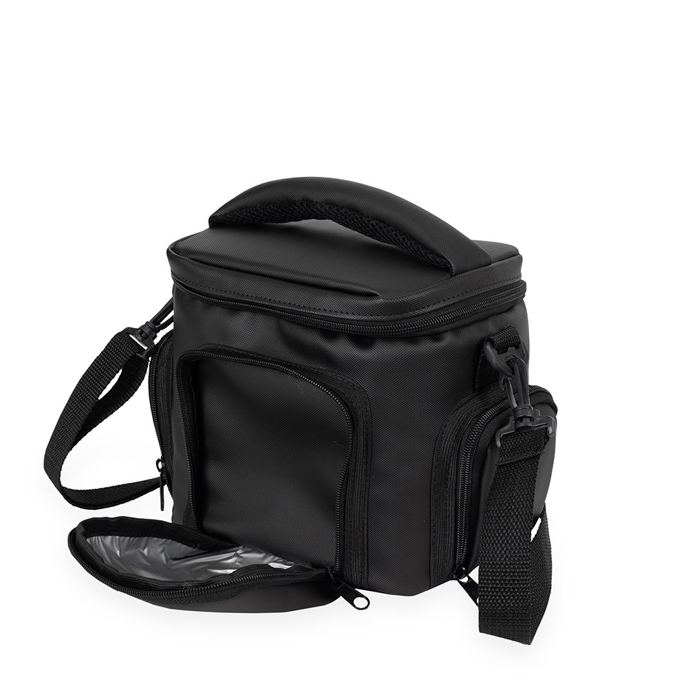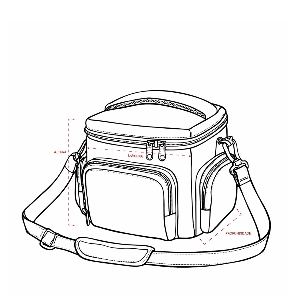 Descrição: Bolsa térmica confeccionada em tecido emborrachado impermeável com fechamento em zíper e capacidade máxima de 7 litros. Possui revestimento térmico interno em espuma PAC e revestimento de folha de PVC, permitindo a conservação da temperatura de alimentos e bebidas por mais tempo. Dispõe ainda de três bolsos externos e alça de mão com revestimento em espuma. Acompanha alça transversal ajustável.