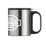 Descrição: Caneca de inox 180ml com cabo e tampa em plástico resistente (não é térmica).