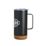 Descrição: Caneca Térmica de 500ml feita em inox com fundo de cortiça, tampa com bocal e trava de segurança. Um item que alia a elegância da cortiça com o inox.