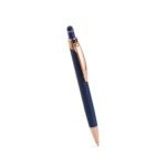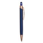 Descrição: Caneta metálica com carga esferográfica azul de 1,0mm e acionamento por clique de revestimento emborrachado para interação em dispositivos com telas sensíveis ao toque.