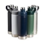 Descrição: Garrafa térmica de parede dupla em inox, capacidade de 700ml. Tampa principal com bocal e tampa protetora com alça de transporte acoplada.