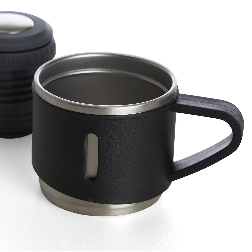 Descrição: Garrafa térmica 450ml em inox com tampa que pode ser utilizada como caneca, tampa interna em plástico resistente (basta um clique para abrir ou fechar), base com borracha antiderrapante.