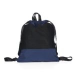 Descrição: Mochila saco feita em poliéster resistente à água com alças reforçadas de nylon. Possui ainda um bolso frontal com fechamento em zíper.